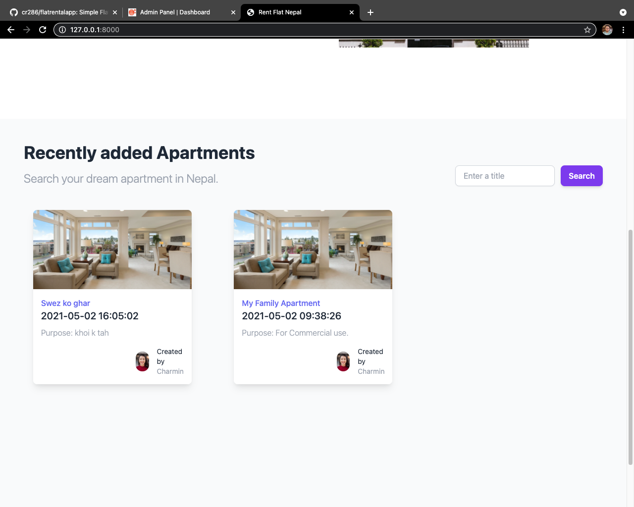 Working on a simple Flat searching Application In Laravel PHP with TailWind CSS and MySQL DB (NO COMPLETED)